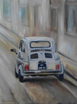 2011Remco's First Love, olieverfschilderij van Oude Fiat 500
